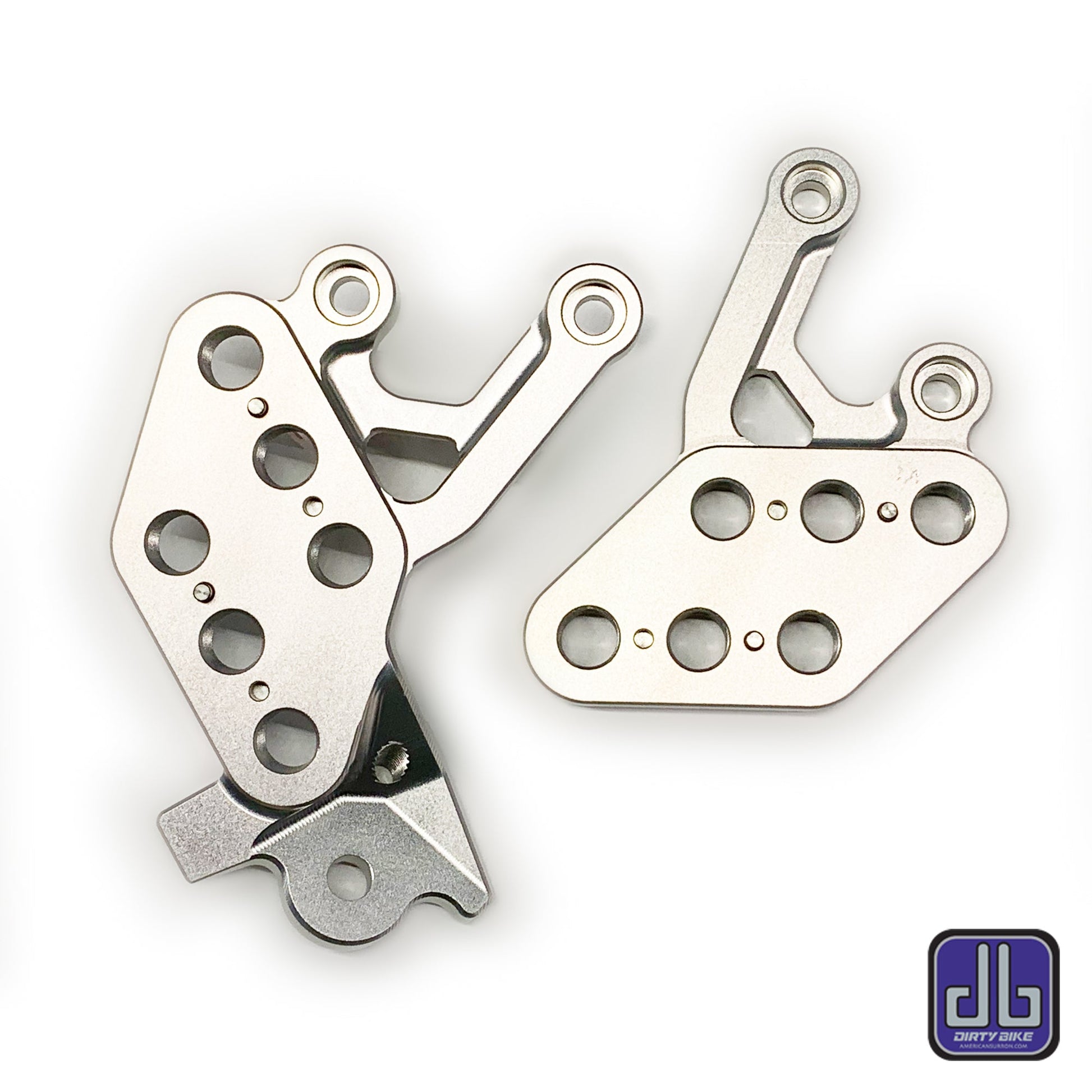 Extra strong brackets feature original peg mounting holes and 3 lower holes for increased adjustability. Great for taller riders, this bracket is 5 times stronger than stock. Made from 6061 T6 series CNC Aluminum, hard anodized in 3 colors. Kit includes 4 stainless steel solid dowel pins.